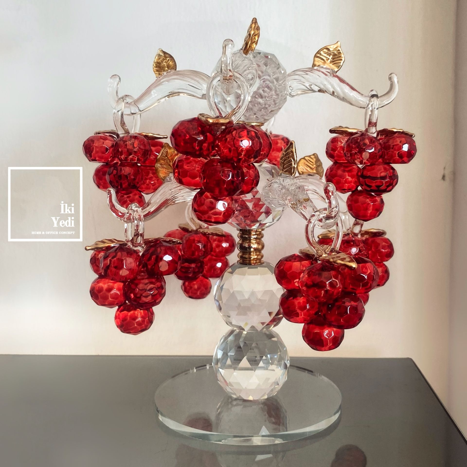 Brest Kırmızı Kristal Cam Üzüm Salkımı Dekoratif Obje Masa Üstü Süs Lüks Ev ve Ofis Aksesuarı