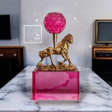 Valaker Altın At Figürlü Pembe Kristal Obje, Cam Dekoratif Biblo, Lüks Ev Ofis Hediyelik Aksesuar