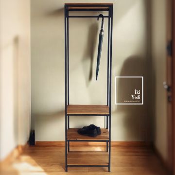 Fermin Metal & Masif Ağaç Vestiyer Portmanto Raflı Askılık Ayakkabılık Ev Dekorasyonu Fonksiyonel Mobilyalar Teşhir Ürünü