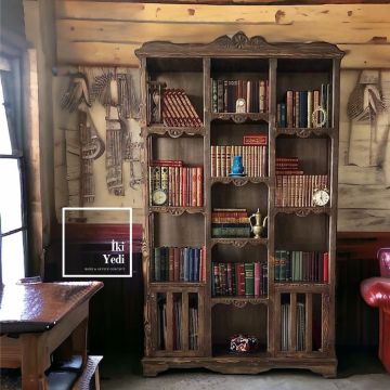 Jenair Masif Ağaç Kitaplık Ahşap Kütüphane El Oyması Oymalı Mobilya Antika Tasarım Ev Ofis Büro Çalışma Odası
