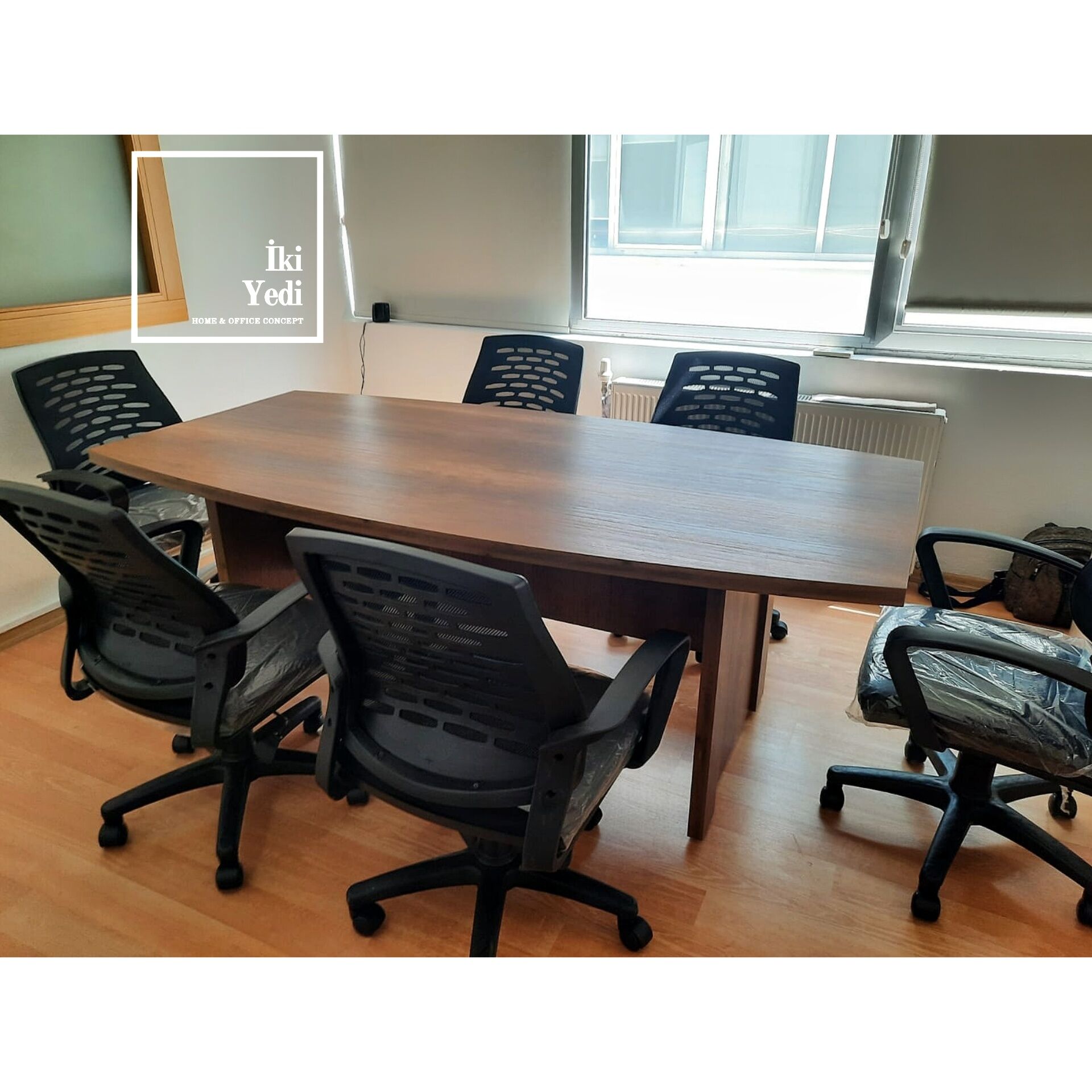 Lunmoe Toplantı Masası Takımı Ceviz Masa Fileli Personel Çalışma Sandalye Koltuğu Seti Ceviz Ofis Büro