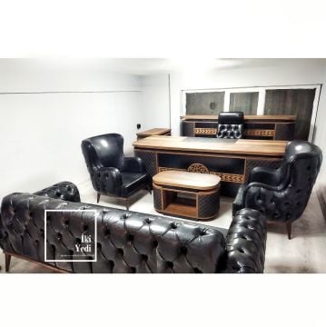 Marley Ağır Makam Oda Takımı Chester Koltuklu Patron Masası Seti Ofis Mobilyası Büro Mobilyaları