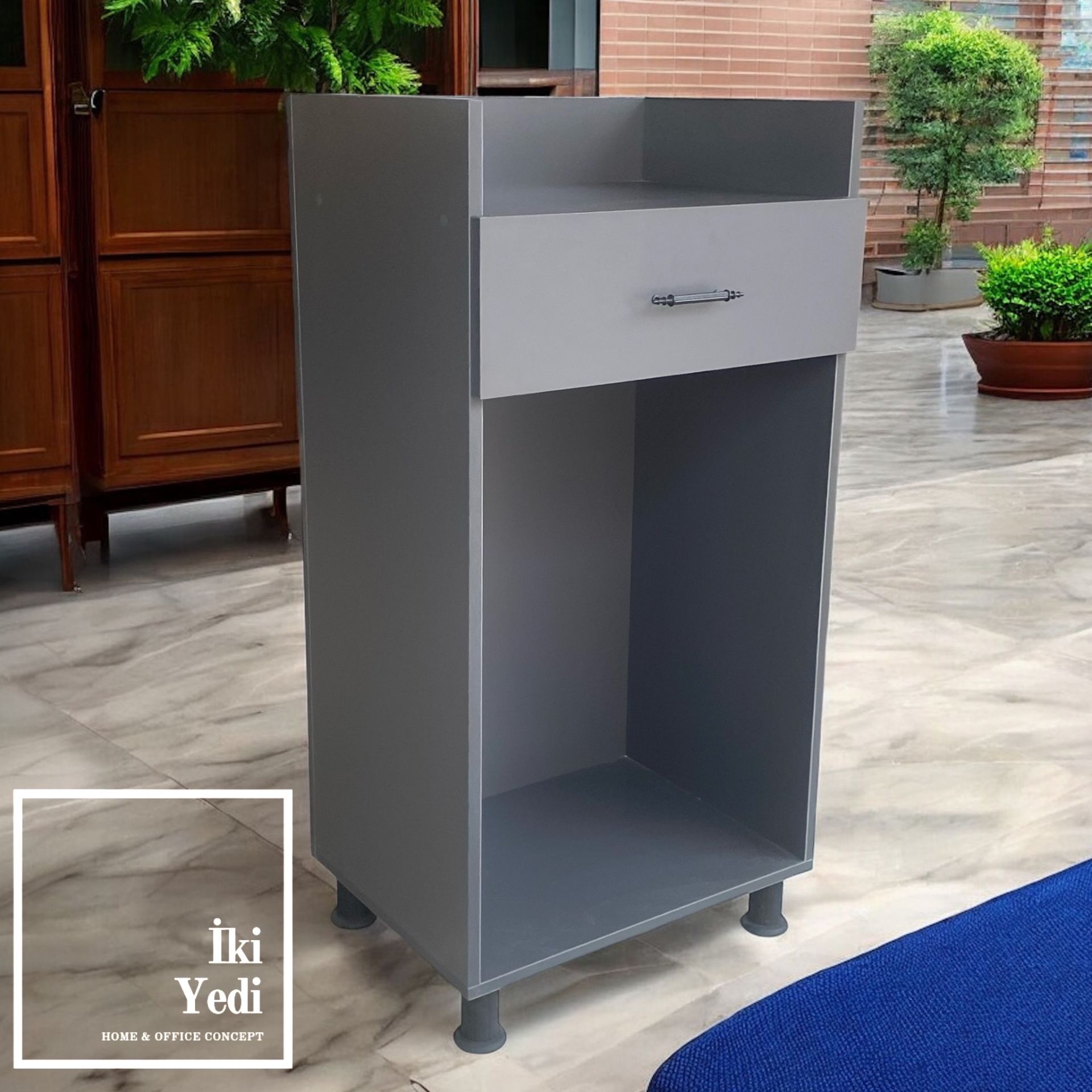 Garcia Antrasit Gri Çekmeceli Kürsü Tipi Karşılama Bankosu Konuşma Kürsüsü Resepsiyon Danışma Masası Para Kasası