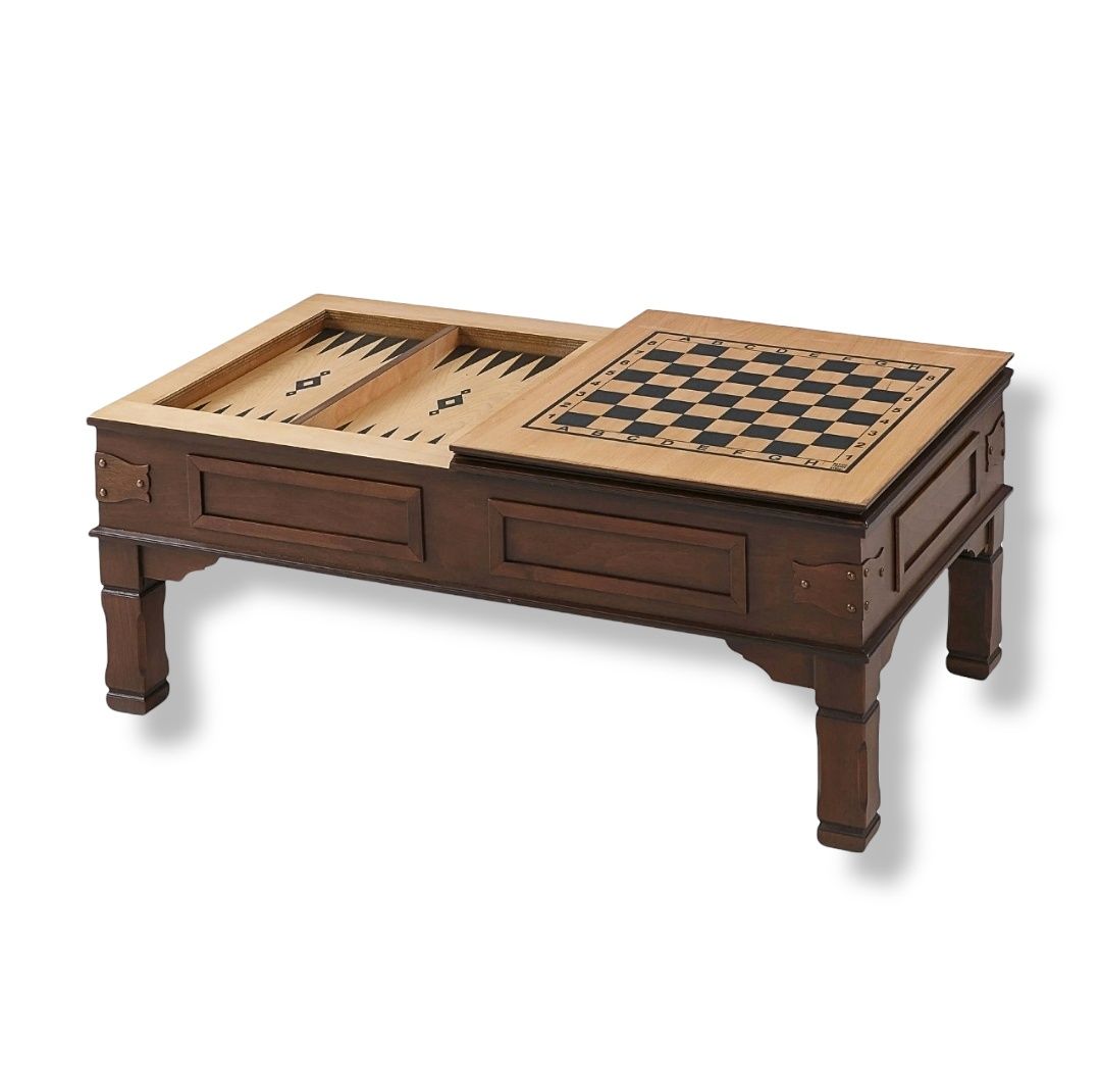 Noupart Tavla Satranç Masası Orta Sehpa Ahşap Ceviz Kaplama MDF Antika Tasarım Chess Backgammon