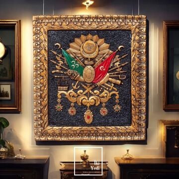 Osmanlı İmparatorluğu 90 x 100 cm Altın Varak 3 Boyutlu Rölyef Tablo, Türk tarihinin ihtişamını evinize taşıyan lüks bir duvar dekorasyonudur. Dev ebatta kabartma devlet arması, Osmanlı'nın görkemli mirasını yansıtarak ortama zarafet katar. Altın varak detayları, tabloya zenginlik ve derinlik kazandırırken, tarih ve kültürle dolu bir atmosfer yaratır. Bu etkileyici dekoratif parça, hem geçmişin izlerini hatırlatır hem de prestijli bir hediye seçeneği sunar.
