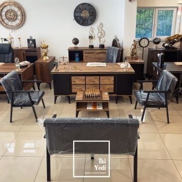 Tyra Makam Oda Takımı Lükens Ayaklı Ofis Çalışma Masası Seti Büro Mobilyası Yönetici Mobilyaları Patron Grubu