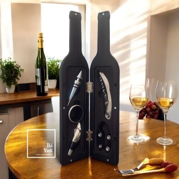 Şişe Şeklinde Tirbüşon Seti – Şarap Gurmeleri İçin Lüks Hediye, Açacak ve Tıpa Takımı