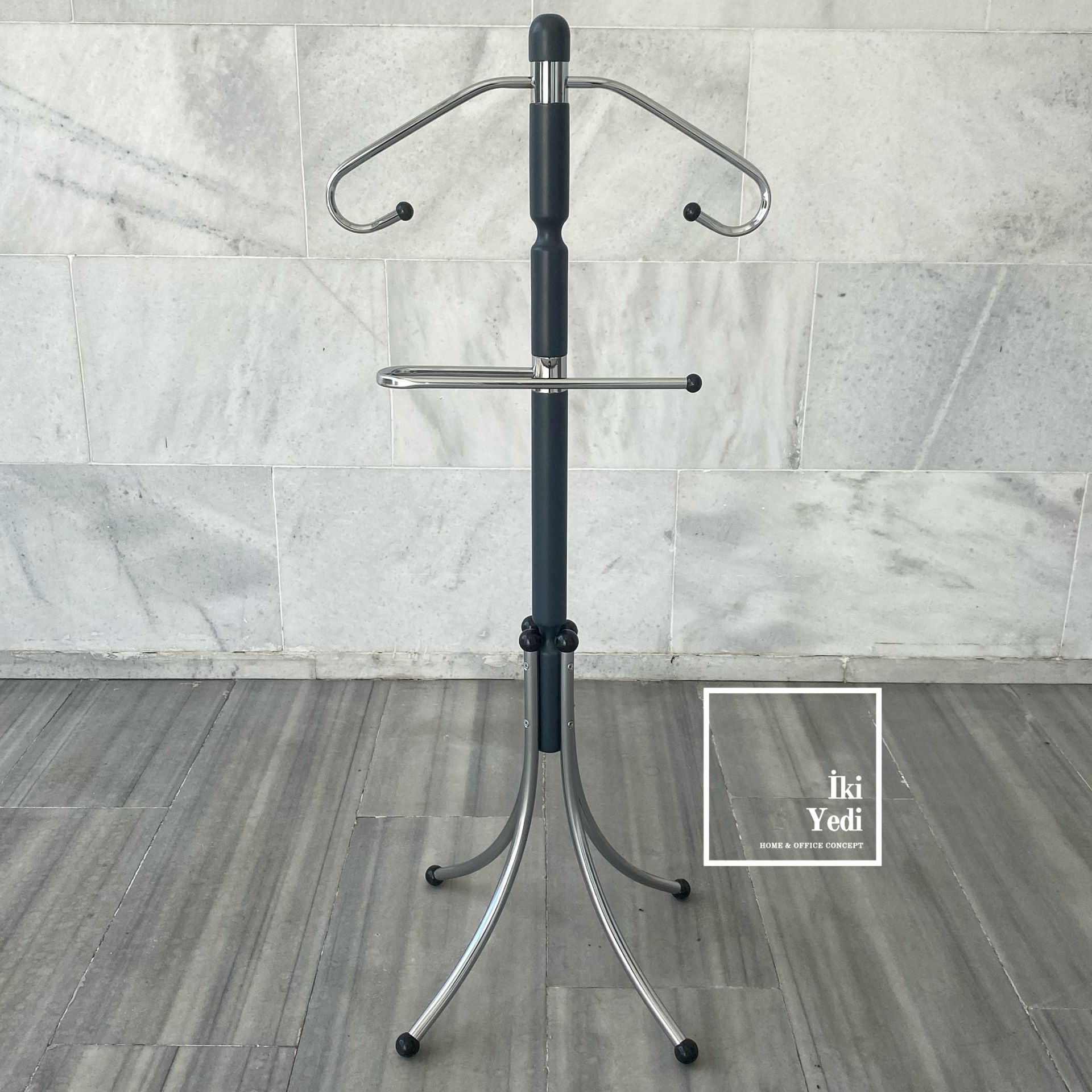 Zizou Antrasit Gri Kayın Ağacı Masif Ahşap Pantolonluklu Dilsiz Uşak Nikel Kromaj Kaplamalı Ceket Askılık Ev Ofis Büro Dekorasyon Dekoratif Hediyelik Mobilya Aksesuar